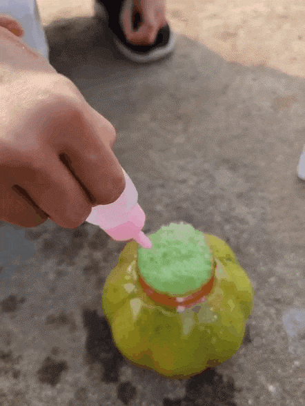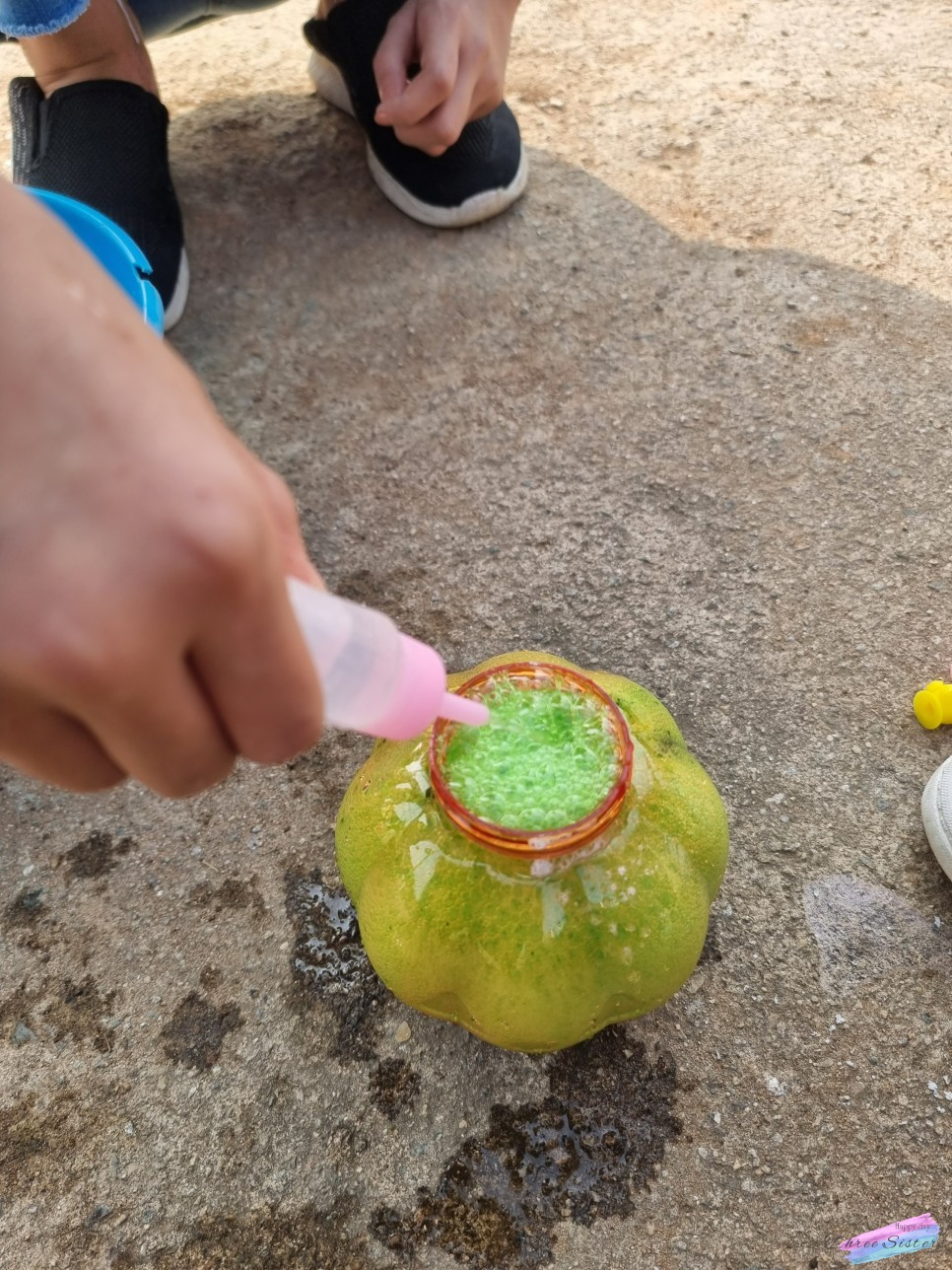 근데 할로윈이잖아요.그냥 화산폭발 실험으로는 재미없을 거예요.