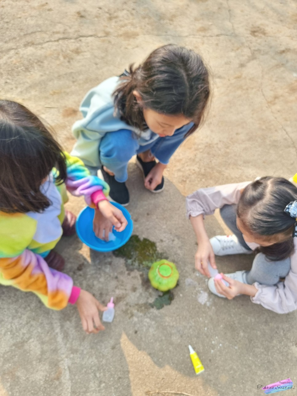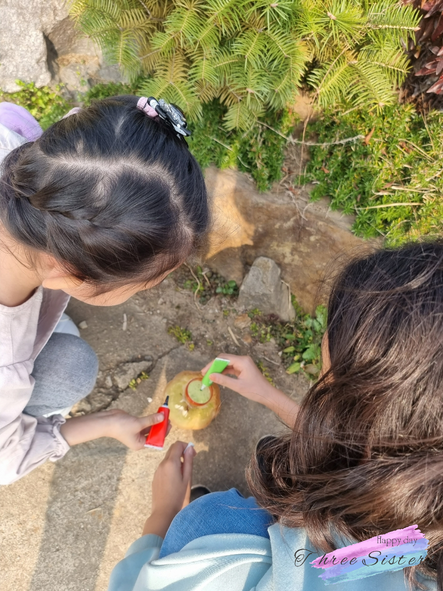 베이킹소다와 구연산의 조합이 냄새가 나지 않으며, 물이기 때문에 부담스럽지 않고 반응도 잘 나옵니다.그럼 즐거웠던 할로윈 세 딸 과학실험을 마칩니다^^