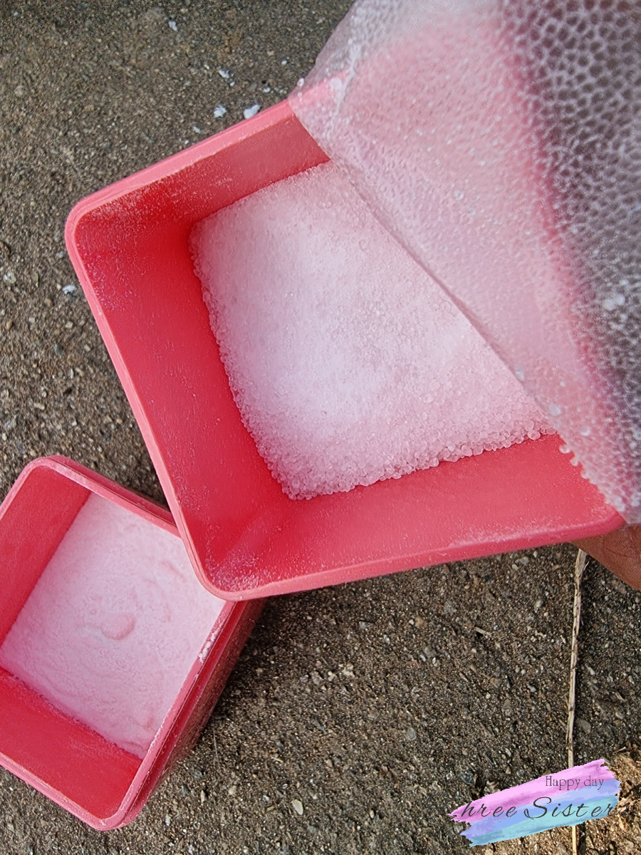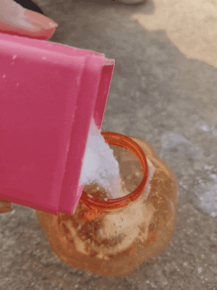 이번에는 물이라 부담 없이 넣어줍니다~ 가루와 물의 양이 많을수록 반응은 더욱 격렬해집니다^^