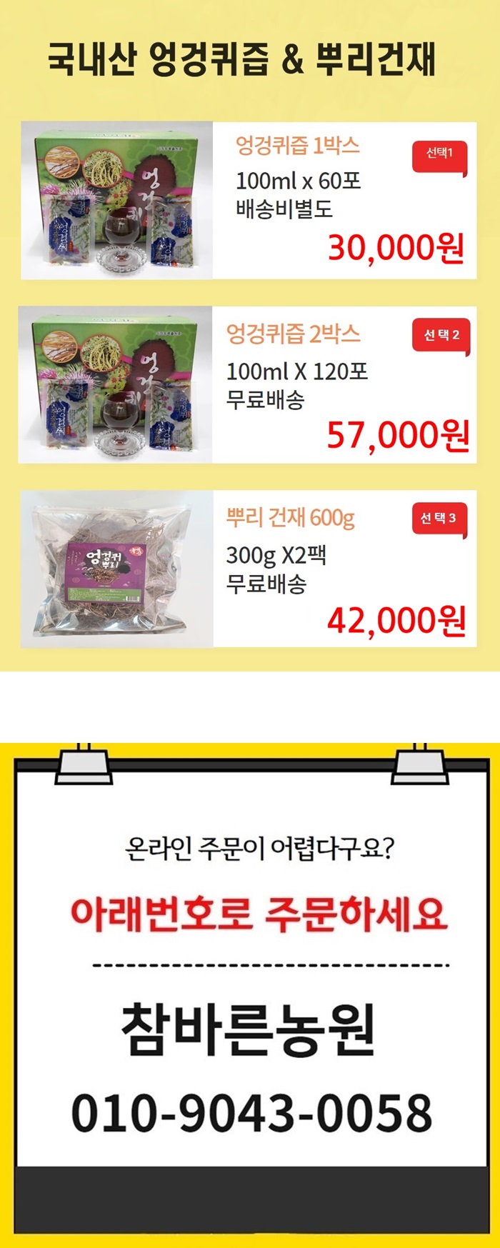◆ 현지에서 자란 국산 ◆ 저온 추출한 엉겅퀴 국물 ◆ 깨끗한 뿌리 건재