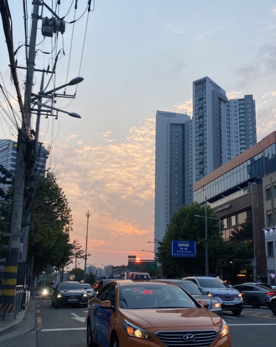 이동중 #노을이 너무 예뻐서 잠깐 멈춰서 눈이 동그래져 있었는데 정말 여행을 온 느낌, 자연의 위대함을 느끼고 걸음을 옮겼다.