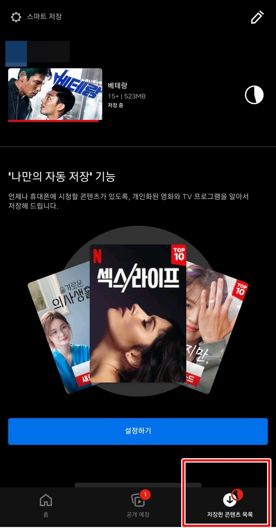 스마트 저장의 경우 시리즈 감상 시 저장 후 감상 시 다음 회차를 자동으로 저장 후 시청한 에피소드는 삭제하는 편리한 기능입니다.