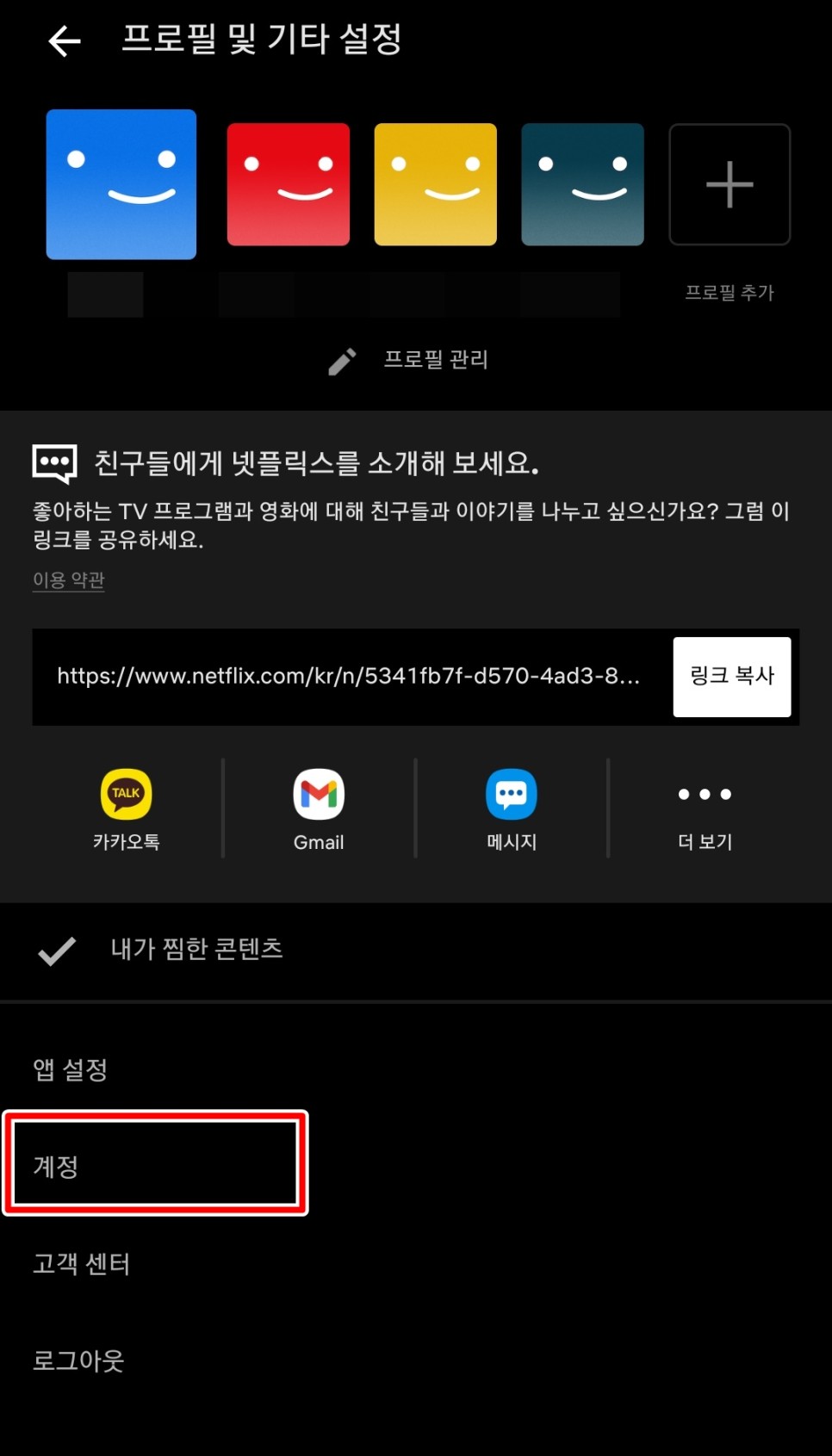 계정을 클릭하면 이런 화면이 나옵니다.밑으로 내려가겠습니다.