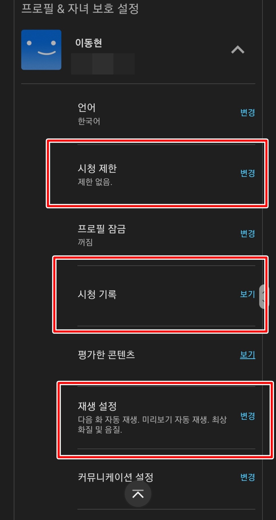 재생 설정 이외에도, 아직 아이가 보기에는, 유해한 영상을 볼 수 없게 제한해 둘 수 있습니다.