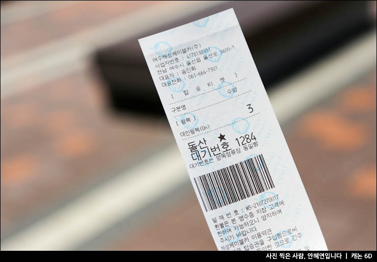 여수 케이블카 할인가에 구입한 티켓 티켓에 대기 번호가 적혀 있어요 이 번호로 탑승 순서를 확인하면 된대요