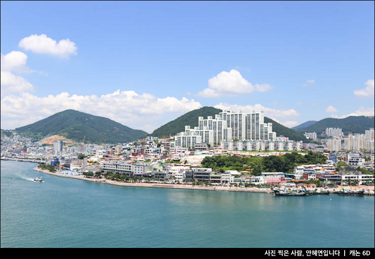 바다와 어우러진 여수의 풍경 멋지죠? 고층 건물이 많지 않은 거리이기 때문에 언덕 위에 세워진 아파트가 거대해 보이네요.