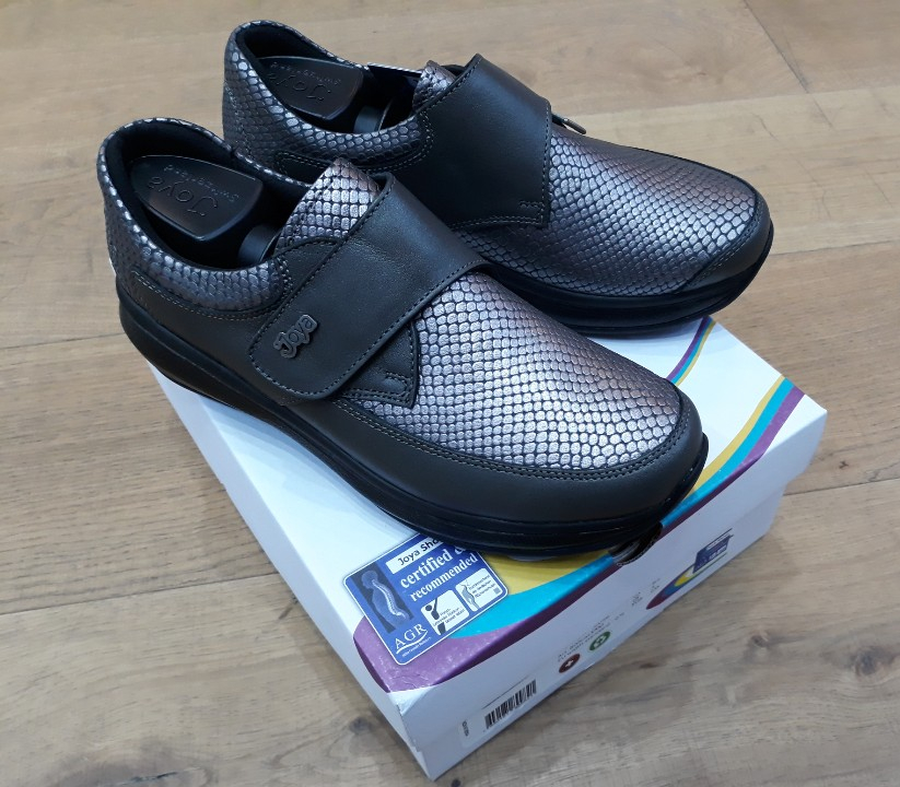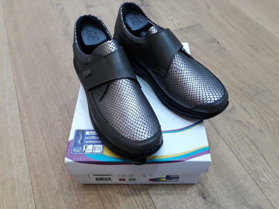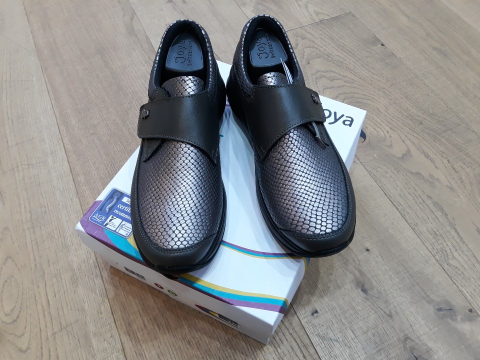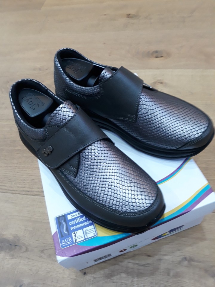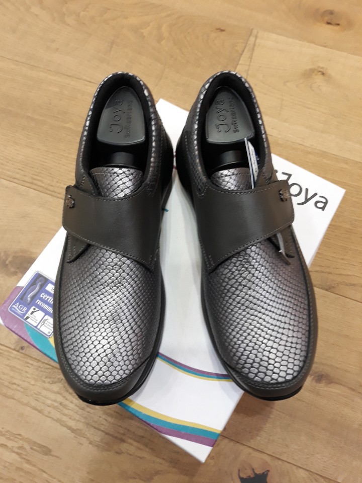 고객님이 선택하신 조야 릴렉스 그레이는 벨크로 부착으로 탈착이 편리합니다.또한 풀그레인 가죽과 도마뱀 무늬 가죽으로 되어 있어 고급스럽고 안감이 특히 부드럽고 발 앞이 예민하신 분들에게 적합한 신발입니다.