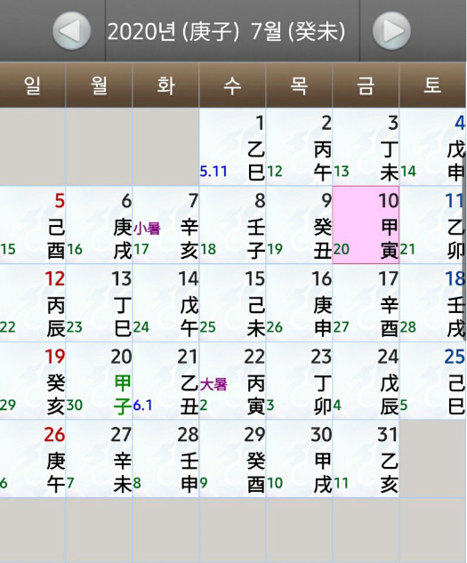 운세, 계미월 갑인일 하루 일진 [무료운세 보기] 2020년 7월 10일 오늘의