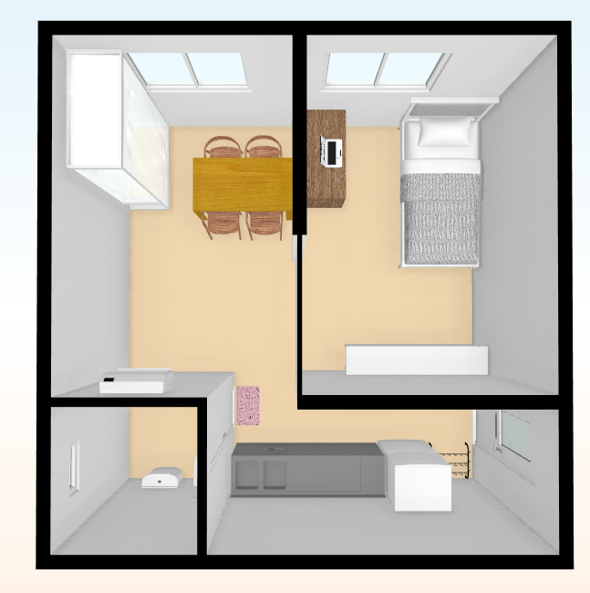가벽을 이용하여 원룸 안 공간을 분리합니다.가벽이라고 해서 답답한 느낌이 아니라 생활공간과 휴식공간을 나누어 보다 쾌적한 생활을 할 수 있도록 하는 것입니다.바퀴 안에 사는 생활 속에서 휴식 공간이 마련되어야 하는 것은 무엇보다 중요해요!
