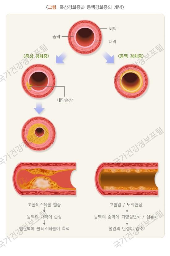 우리들이흔히동맥경화라는것은이런죽상동맥경화증을뜻하는것으로죽상경화와동맥경화의의미는다르지만거의똑같이진행되면서발생하는것으로보통뜻이혼용되어사용되고있다고합니다.