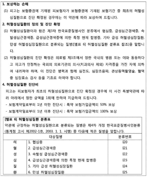 이 사건보험계약에 포함되는 허혈성 심질환 진단비 특별약관(이하 “이 사건 특별약관”이라 한다) 중 관련 내용은 다음과 같다.