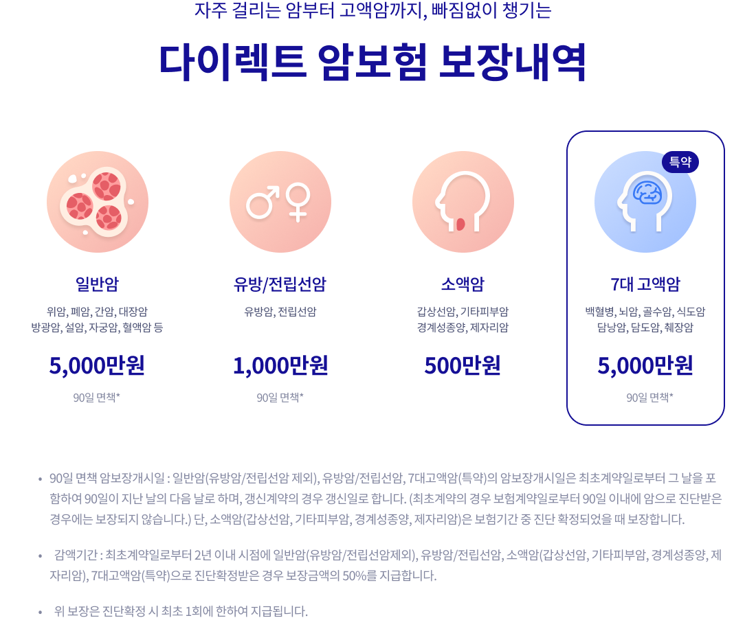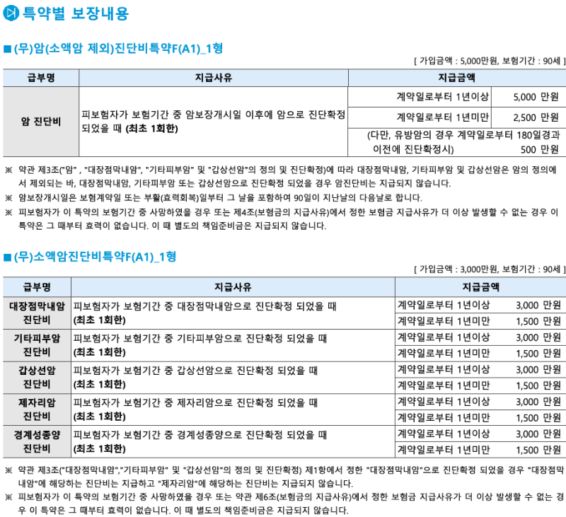 소액암의 범위는 자신의 장소의 암이나 경계성 종양이며 최대 5백만원 가입이 가능합니다.이 부분이 조금 아쉽지만 여성에게는 충분히 좋은 상품입니다.