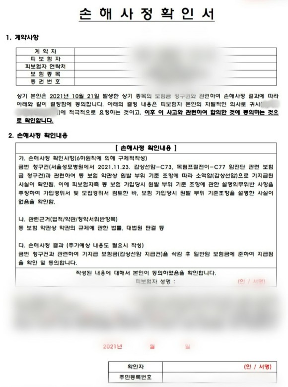 위 사진은 저희가 주장한 원전 부위 기준 조항에 대한 설명 의무 위반이 확인되어 이미 지급된 10% 이외에 나머지 미지급금까지 지급한다는 내용입니다. 보험회사 측 조사자로부터 받은 확인서인데 제 의뢰인도 잘 마무리해서 너무 좋아하더라구요~ 본인이 10%만 받고 끝나는 줄 알았는데 혹시나 해서 제대로 보상까지 받아서 너무 기쁘다고 하시는데 저도 기분 좋고 보람 있는 의뢰건이었어요.항상 느끼는 거지만 뭔가를 많이 알면 돼요. 하지만, 많이 알고 있다고 해서, 보험금을 제대로 받는 것은 아닙니다. 중요한 건 보상을 잘 받으려는 의지가 있어야 전문가에게 의뢰하거나 동행해서 좋은 결과가 나오지 않을까 싶어요.