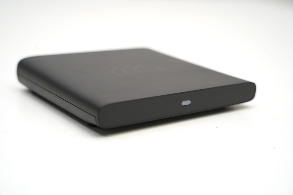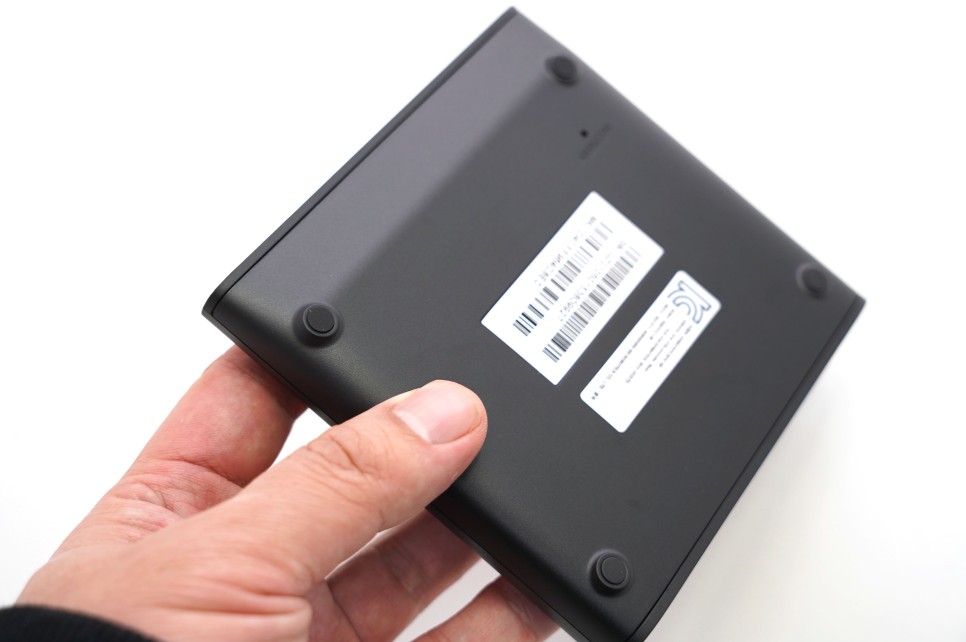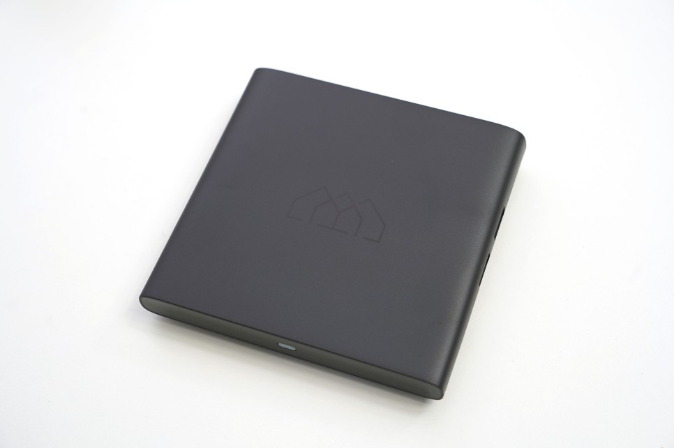 디자인은 블랙색상에 심플하게 정사각형 모양을 하고 있는데요. 손바닥보다 조금 큰 사이즈로 두께도 얇고 가벼워 설치 공간을 크게 차지하지는 않았습니다.
