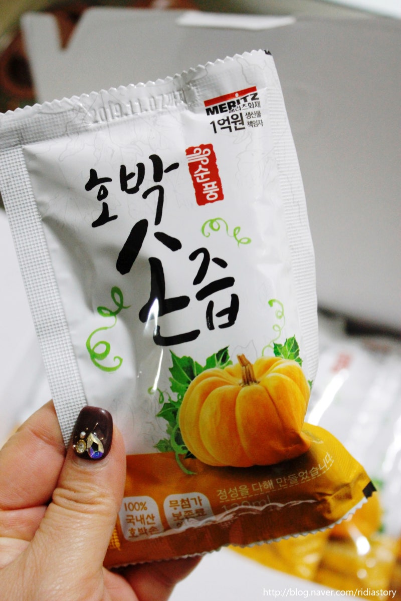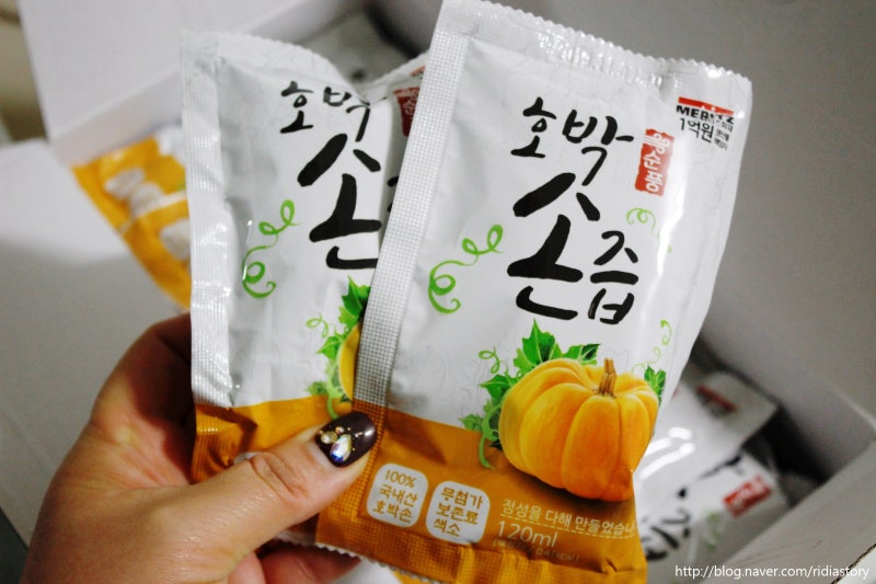 100% 국산 호박손으로 보존료와 색소를 무첨가했다고 합니다.