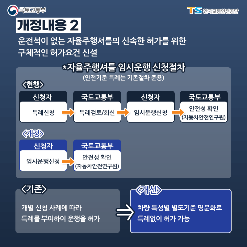 <개정 내용 2> 운전석 없는 자율주행 셔틀의 신속한 허가를 위한 구체적 허가조건 신설