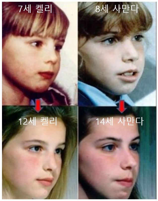 얼굴이 길어지는 아데노이드형 얼굴 켈리는 7살이었고 사만다는 8살이었어요