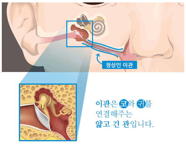 이렇게 이관이 손상되면 이관 기능 부전으로 귀의 기능 저하가 있을 수 있습니다.