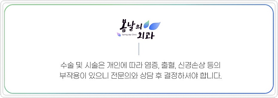 수술 당일에도 퇴원할 수 있어? 이는 수술 후 통증이 크게 완화되며, 창상에 의한 치료 지연 문제가 없기 때문에 수술 당일 또는 익일 퇴원이 가능합니다. 그만큼 쉽게 일상생활에 빠른 시간 내에 복귀할 수 있으니 디스크 수술이 두렵지 말고 디스크 증세가 있다면 신속하게 병원을 방문하세요.