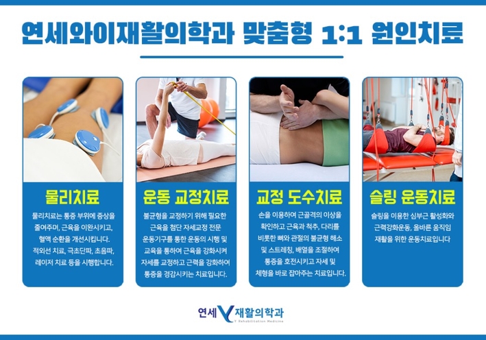 연세Y재활의학과는 맞춤형 1:1검진과 치료를 진행하며 보다 세밀하게 현황을 파악하고 치료할 수 있습니다.