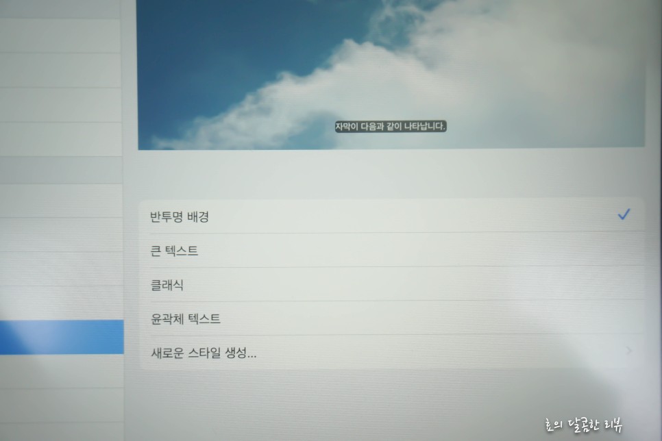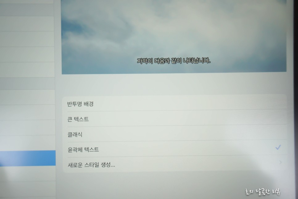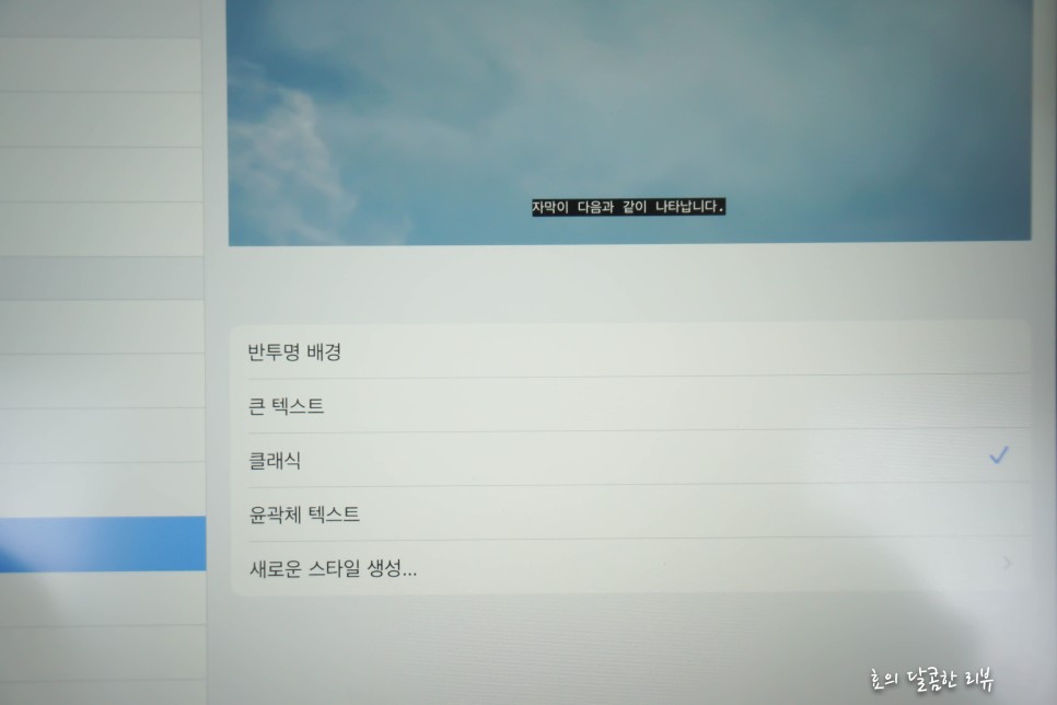 스타일에 접속하면 텍스트로 글씨체, 사이즈, 색상은 물론 배경 색상과 불투명도까지 선택할 수 있습니다.몇 가지 설정을 해 두고, 상황에 맞게 넷플릭스 자막 설정을 선택할 수도 있기 때문에 편리합니다.