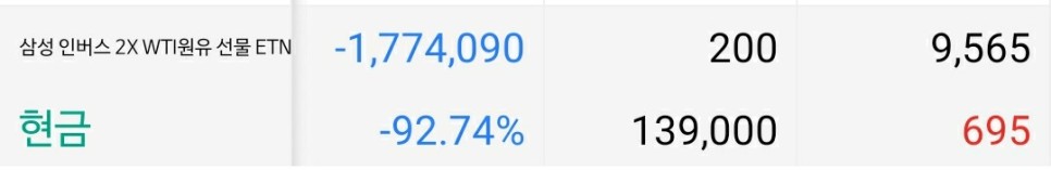 근대 좀버 망한 게 1개 있어 2020년 4월에 처음 간 종목 원유 선물 인버스 ㅎㅎㅎㅎㅎㅎㅎㅎㅎㅎㅎㅎㅎㅎㅎㅎ 92.74% 실화?ㅎㅎㅎ 하찮은 돈인줄 알아. 손해 안봤어. 그냥 손절매하고 139000원 받는 것보다… 그냥 지켜보는 가운데… #좀버 실패 ㅜ_ㅜ 다시 100% 되면 재밌겠다 돈 잃으면서 배우는 주식…