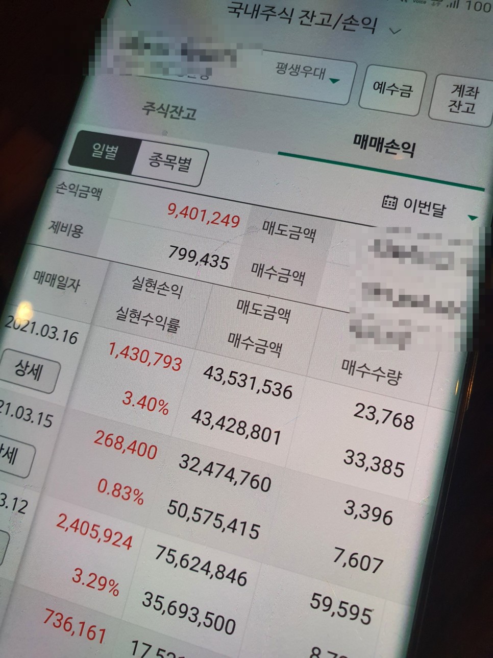 이번 달 나의 실현손익 현황, 운이 좋았다.