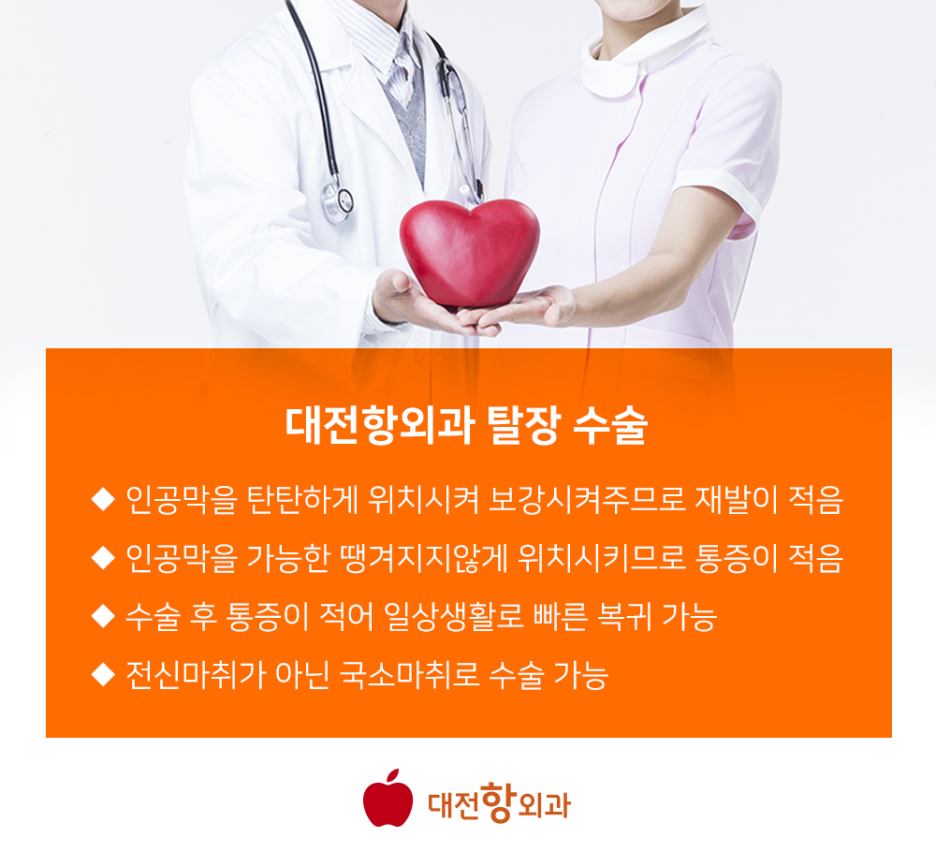 대전 소아 탈장 치료를 잘하는 대전항외과의 탈장 수술은 인공만을 확실하게 위치시켜 보강시켜 주기 때문에 재발이 적고 인공막을 가능한 한 당기지 않도록 위치시키기 위해 통증을 최대한 줄여서 수술합니다.또한 수술 후 통증이 적어 일상생활에 빠른 복귀가 가능하며 전신마취가 아닌 국소마취로 수술이 가능합니다.