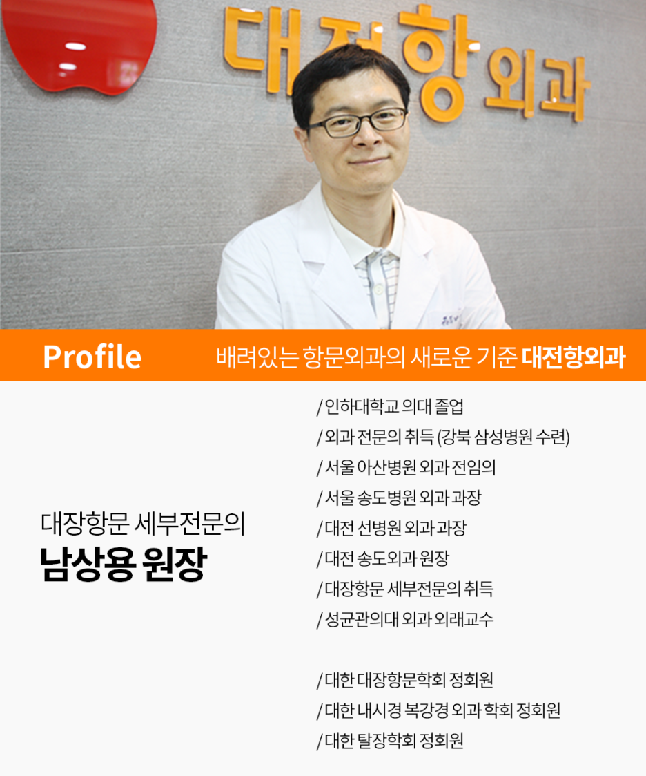 착한 항문외과, 새로운 기준 대전항외과는 대장항문 세부 전문의 남상용 원장과 함께 합니다.