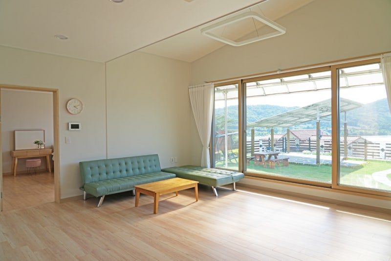 이처럼 실내에서도 밖이 잘 보이기 때문에 거실에 앉아 있는 것만으로도 좋다. 장성독채펜션 달빛펜션은 방 3개, 화장실 2개로 최대 10명까지 숙박할 수 있다고 하니 대가족 여행으로 추천한다. 신축 펜션이라 정말 깨끗하고 분리수거도 안에서 할 수 있도록 준비해주셔서 주인분들의 배려심이 묻어나는 공간이었다.