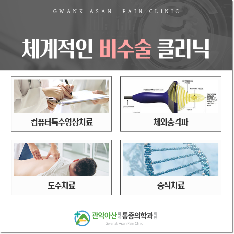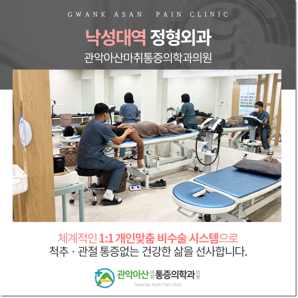 낙성대역 성형외과에서 지역주민들의 근골격계 건강을 담당하는 본원에서는 모든 환자가 가장 적합한 방법으로 재활치료를 할 수 있도록 1:1 맞춤형 진료를 실시하고 있습니다. 같은 질환의 통증이라도 개인의 성별, 연령, 직업, 생활패턴, 기타 특이사항에 따라 근원이 다를 수 있으므로 맞춤케어를 원칙으로 지원합니다. 체계적인 비수술 클리닉으로 장기간 치료를 목적으로 하는 만큼 편안하고 친절한 서비스를 제공하오니 편안하게 이해해주시길 바랍니다.
