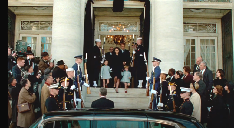 사건 후 주변 사람들은 장례식을 쉽게 치르고 안전을 위해 빨리 숨도록 강요한다.하지만 남편을 이렇게 허무하게 보낼 수 없었던 재클린은 장례를 통해 남편이 전 세계인의 기억에 남도록 했다.당연히 성대한 장례식을 치르는 것을 반대하는 권력자들과 싸워야 했을 것이다.케네디 대통령이 후대에도 많은 사람의 기억에 남게 된 것은 이 재클린 때문인지도 모른다.