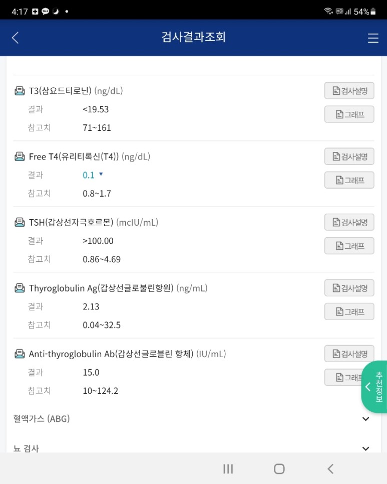 먹을 수 없는 것과 먹지 않는 것은 아주 큰 차이라는 것! 요양병원에서의 입원 생활은 적어도 물리적으로 금기식을 차단하기 때문입니다.오드식 식이요법만은 잘 실천했는지 강남세브란스핵의학과 의사가 피검사 갑상샘 수치가 이렇게 좋은 사람은 처음이라며 칭찬했다.