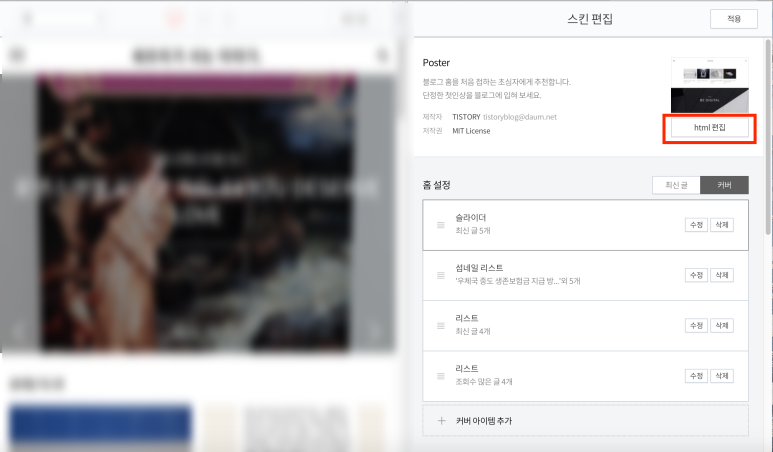 html 편집에 들어간다.