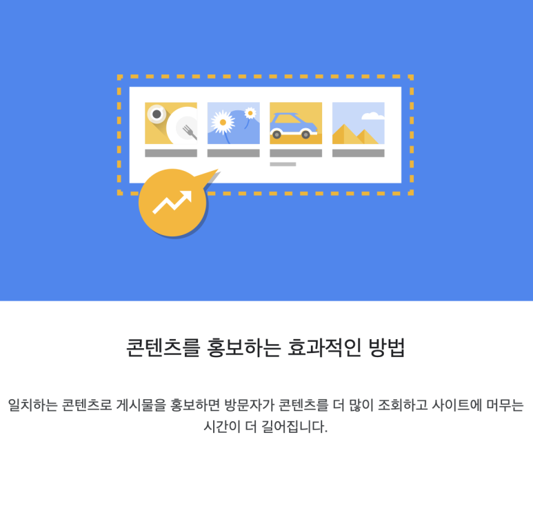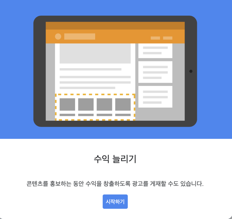 처음 일치하는 콘텐츠를 클릭하고 들어가면 이처럼 이 광고 효과에 대한 기대치를 높이는 간단한 광고 소개가 나온다.소개의 마지막 장에 [시작]을 눌러준다.
