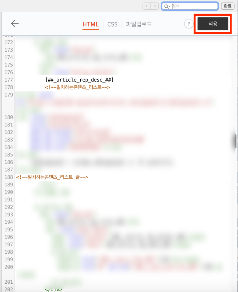 그래서 이번에는 위쪽에 지난번 넣었던 어드센스 자동광고 코드를 그대로 표시하고 아래쪽에 중복해서 넣었던 자동광고 코드를 지우고 아래쪽에 일치하는 콘텐츠 광고 코드를 넣은 것.