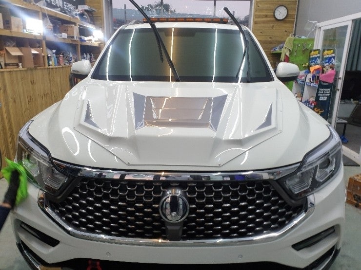 이렇게 광택작업이 총 4공정으로 끝나~ 쉴 수도 없고…(울음) 이제 유리창 발수코팅과 도장면에 유리막코팅이 시작됩니다.유리창에는 유리 발수 코팅제로 작업을 합니다.우천 시 시야 확보에 적합합니다.야간 운전할 때 더 시야가 좋다는…
