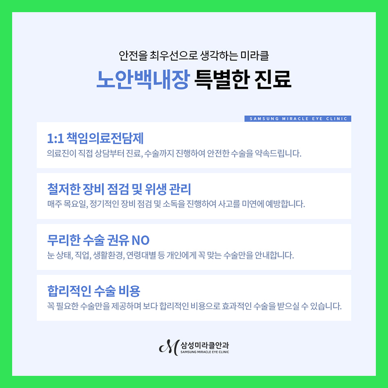 1. 시력교정술 2) 백내장 / 노안수술 3) 안성현 4) 안구건조 5) 안질환 6) 안구 종합검진