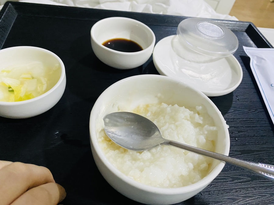 물도 먹을 수 있게 되고, 점심은 미음, 저녁은 죽!!!!! 빨리 밥 먹고 싶었다. (웃음)
