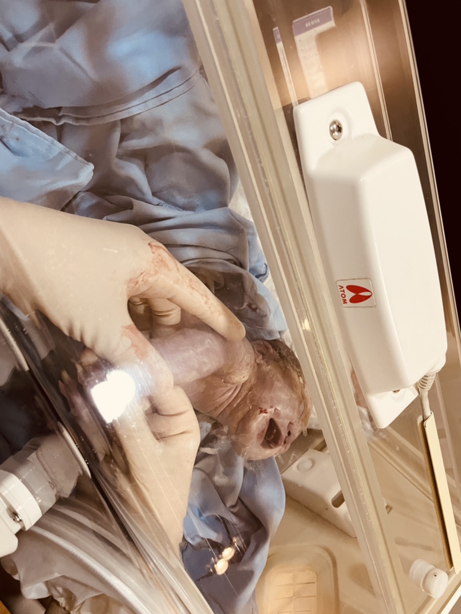 10월22일 오후2시반 키48cm 몸무게2.69kg 에 A형은 36주6일인데 병원에서는 37주0일 이라고 적어놨어. 하지만 잘 울고 우는 목소리도 건강해.❤️더 오래 안고 오지 않았는데 무사히 태어나 줘서 정말로 고마워.ㅠㅠ