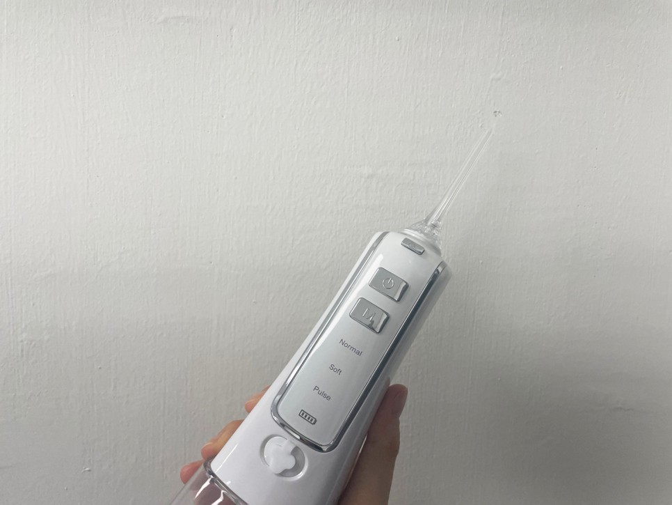 물만 마셔도 좀 부족함을 느껴 구강 세척기를 하나 갖추고 활용해 봤는데 물살 조절이 생각보다 어려워서 얼굴과 옷에 계속 물이 튀는 거예요.