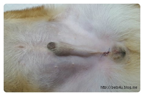 탈장은 배꼽, 회음부, 서경부의 탈장이 대표적인 큰 사진에서 볼 수 있듯이 강아지의 배에서 나타나는 탈장을 제대탈장이라 합니다.