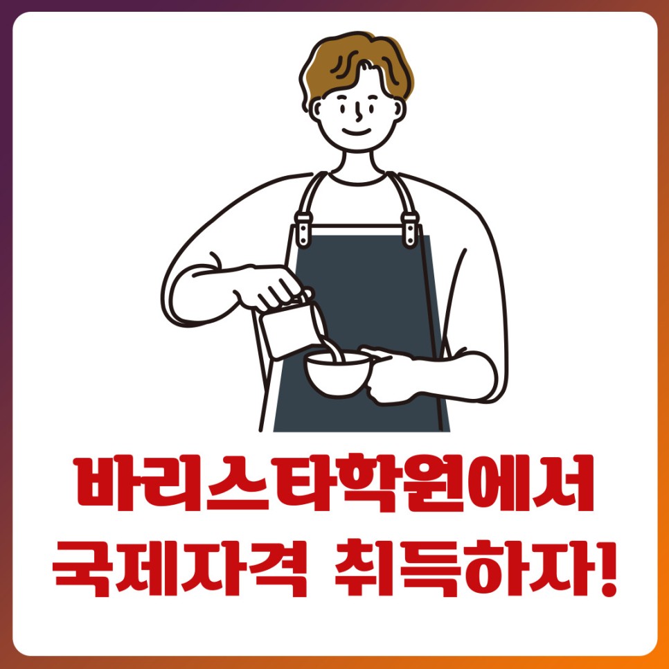 이 조건을 살펴보면 수험생들이 바리스타 자격증을 취득한 후 어떤 방향으로 진출할지를 결정하고 그 길을 걸을 수 있도록 도와달라는 점을 발견할 수 있습니다.따라서 본인이 커피 전문가가 되고 싶다면 국제 자격증을 획득하는 것이 본인 취업 전략에 좋을 것 같습니다.