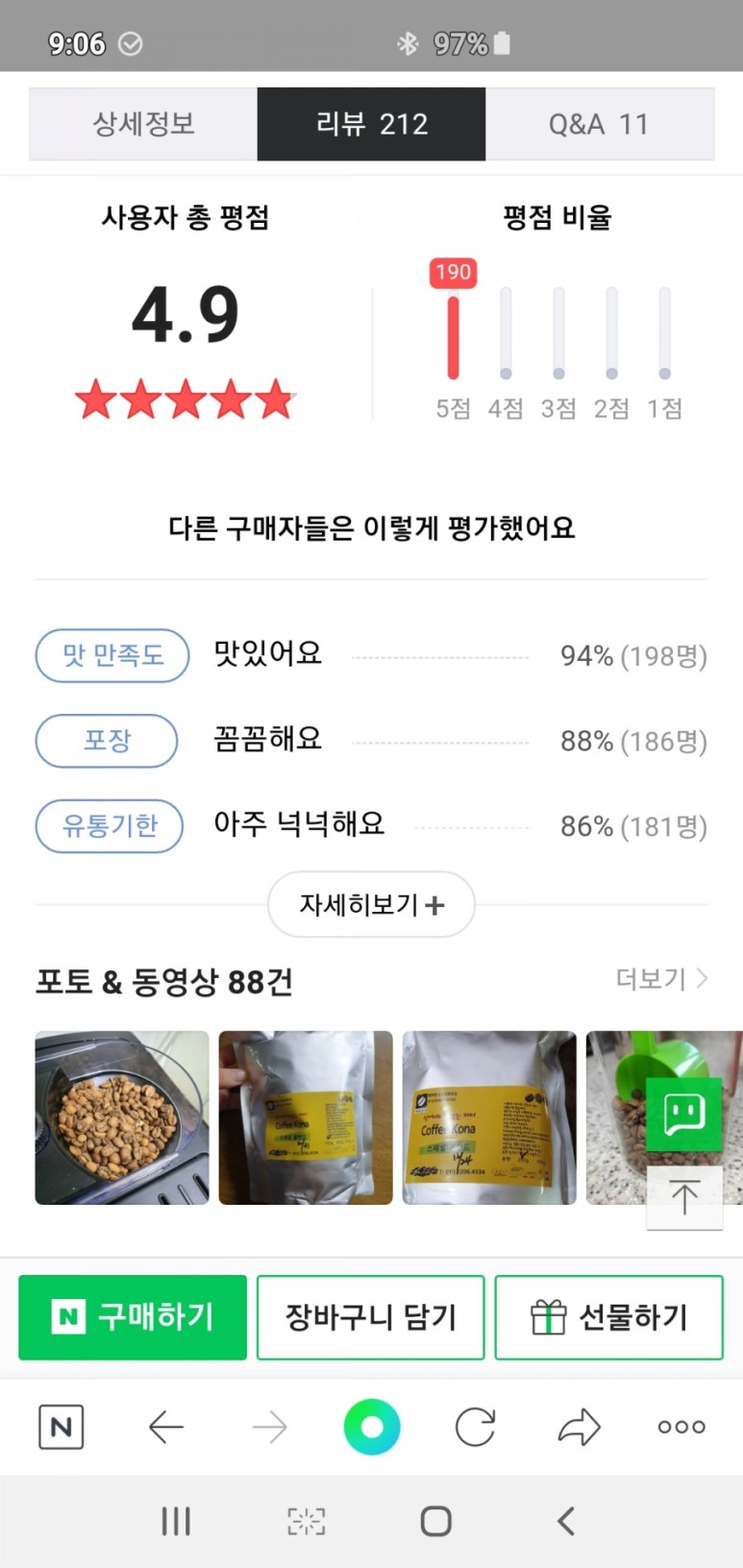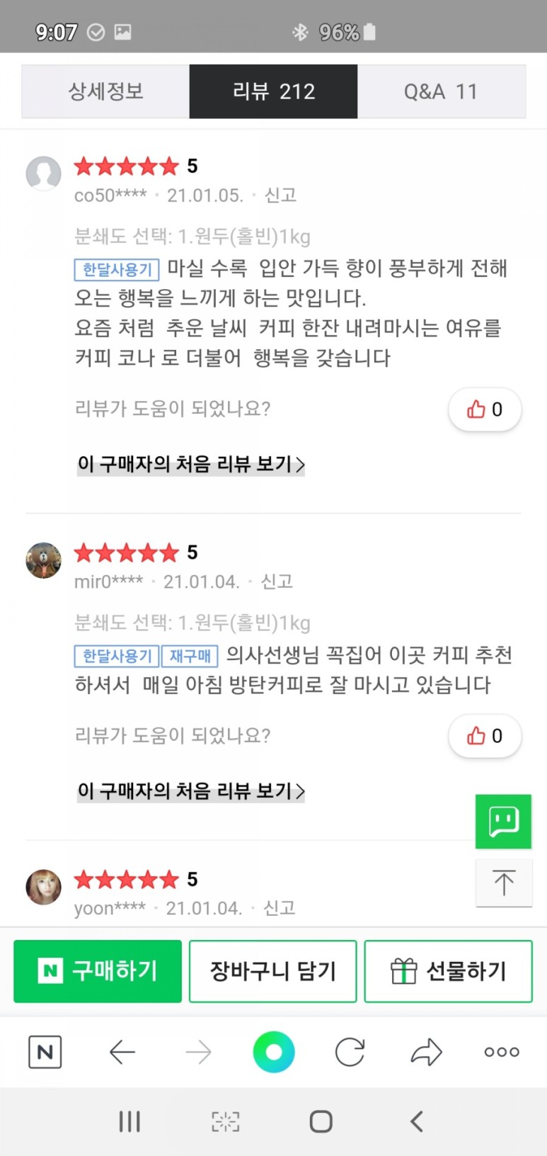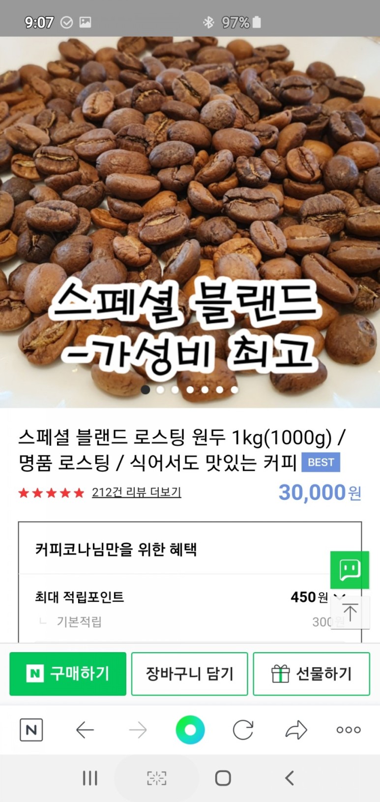 입소문을 타고 호평을 받고 있는 가성비콩 2종류를 추천합니다. 네이버 스마트스토어 212 리뷰에서 5점 만점에 4, 9점과 출시 두 윌에서 9가지 리뷰 총 5점을 받은 커피입니다. 커피 평가에서 만점 리뷰는 불가능한 일임에도 불구하고 드신 분들과 의사 선생님들도 추천을 계속 받습니다.(상업적 광고 홍보는 전혀 하지 않습니다)