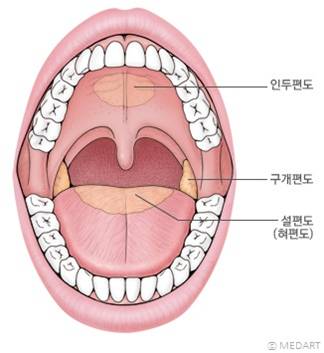 편도는 목 내부와 코 뒤에 위치한 조직입니다.편도는 외부에서 들어오는 세균이나 이물질을 방어하는 역할을 하는데요.자주 편도가 부어 오를 때는 입천장 편도의 경우가 많이 있습니다.