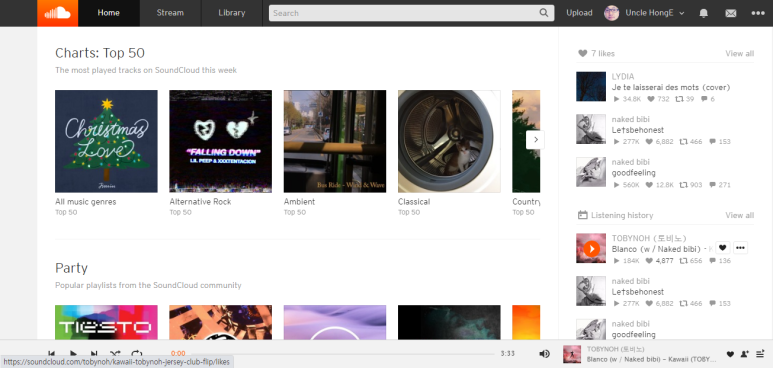 사운드클라우드에 올라온 음악을 듣다가 개성 넘치는 음악을 하는 뮤지션이 많다는 사실을 깨달았지만, 대중성이란 측면에서 다소 아쉽고 흥미를 잃은 것 같다.