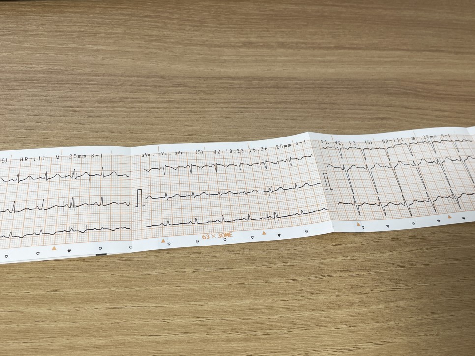 진오비 산부인과 도착 후 만삭 검사 중 가장 먼저 심전도 검사 진행이 정상이라고 하는데 나는 그래프 보는 법을 모른다.