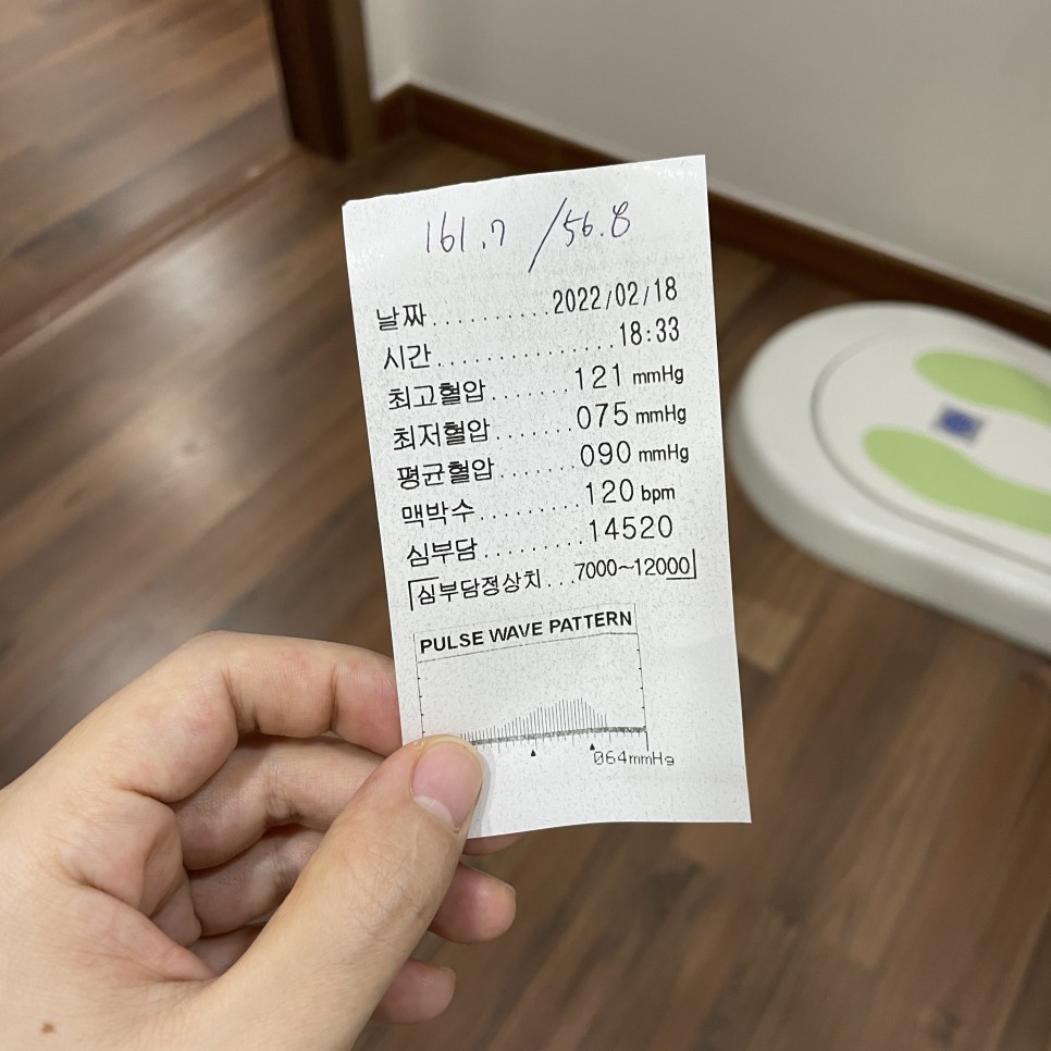 몸무게와 키, 혈압을 재서 간호사에게 제출