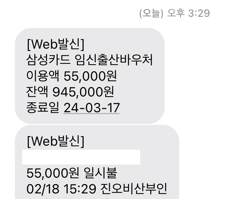 국민행복카드 바우처를 사용해 진OB 산부인과 진료비는 55,000원이 나왔다.