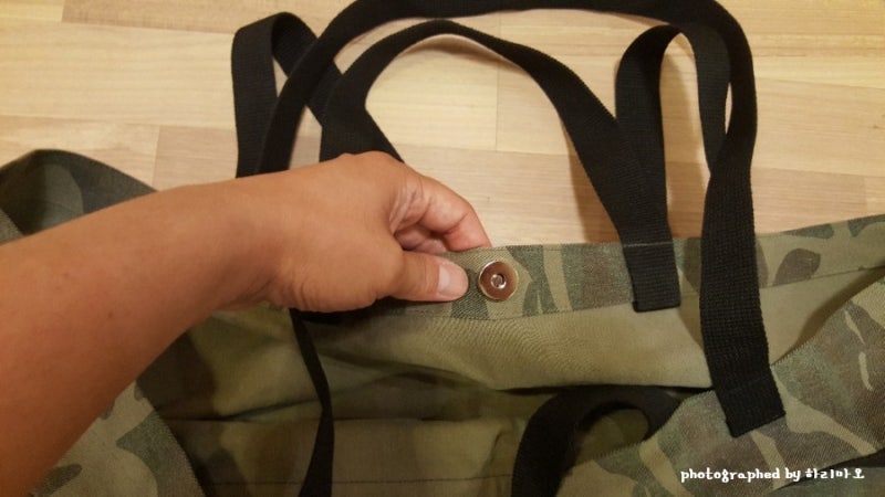 가방 안쪽에는 자석으로 된 스냅버튼이 있습니다.손으로 누르지 않아도 자석이라 잘 붙어요. 가방 스트랩은 2개로 되어 있다.손으로 들고 다닐 수 있는 짧은 스트랩! 어깨에 메고 다닐 수 있는 긴 스트랩! 이렇게 구성되어 있습니다.